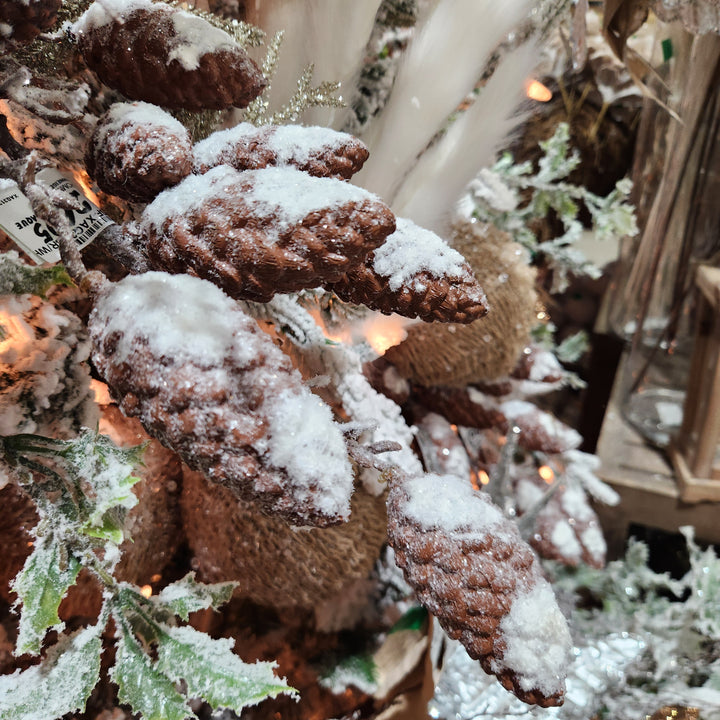 Apportez une touche de forêt enneigée à votre décoration des Fêtes avec cette magnifique tige de cocottes enneigées de 30 pouces. Idéale pour rehausser vos arrangements floraux, couronnes, centres de table ou même votre sapin, cette branche recrée parfaitement l'effet givré de l'hiver. Les cocottes recouvertes d’un délicat manteau de neige ajoutent une texture naturelle et chaleureuse à votre décor de Noël. Un incontournable pour une ambiance nordique et féérique.