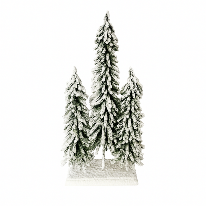 Cet ensemble de 3 sapins alpins floqués de 29'' avec base en bois est parfait pour créer un paysage hivernal complet. Les différentes hauteurs offrent un bel équilibre visuel, que ce soit sur une table, dans une vitrine ou au pied d’un sapin principal.