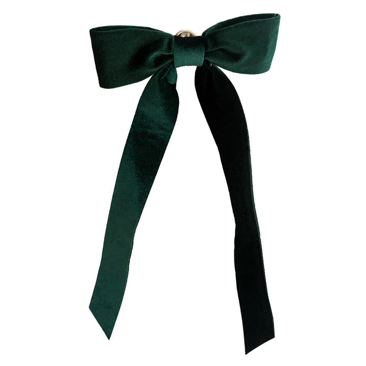 La boucle en velours vert foncé de 15'' x 6,5'' à clip est réalisée dans un tissu doux et mat, avec une structure intérieure qui lui permet de garder sa forme. Son vert profond apporte une touche classique et intemporelle à tout sapin ou guirlande.