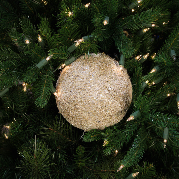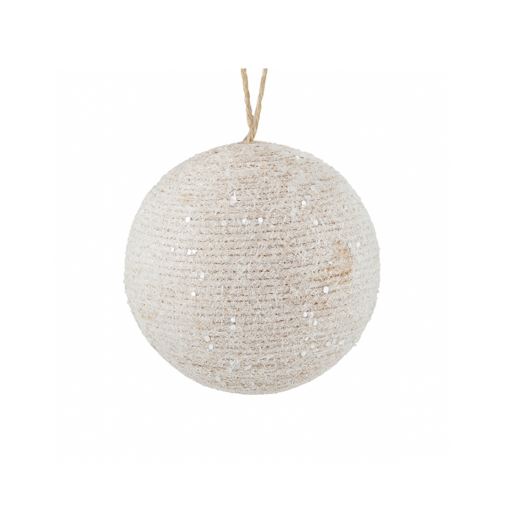 Cette boule en jute naturelle givrée apporte une touche rustique et authentique à votre sapin. Sa texture brute est adoucie par un léger givre, pour un effet hivernal réussi.