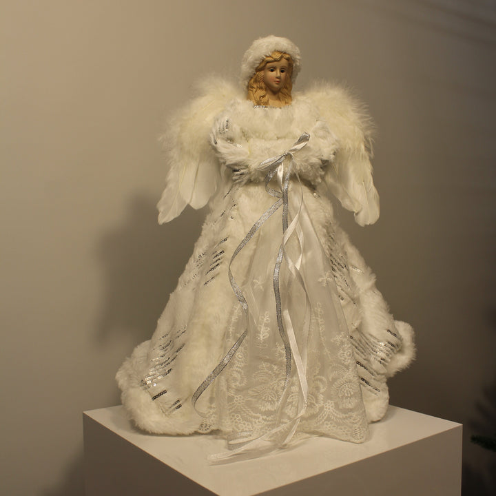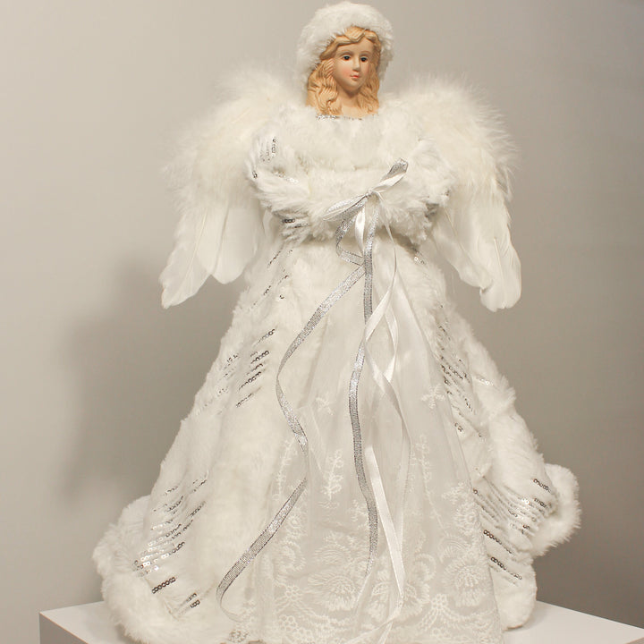 Cime ange en fausse fourrure blanche de 16'', au style nordique chic. Son corps doux et texturé crée un effet cocooning parfait pour une déco naturelle, épurée ou hivernale.