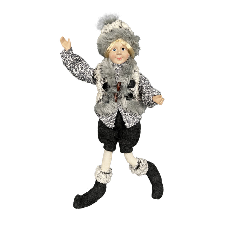Cette fille suspendue articulée grise de 18'' se distingue par son look doux et hivernal. Son style épuré et ses membres mobiles permettent de la suspendre ou de l’installer assise.