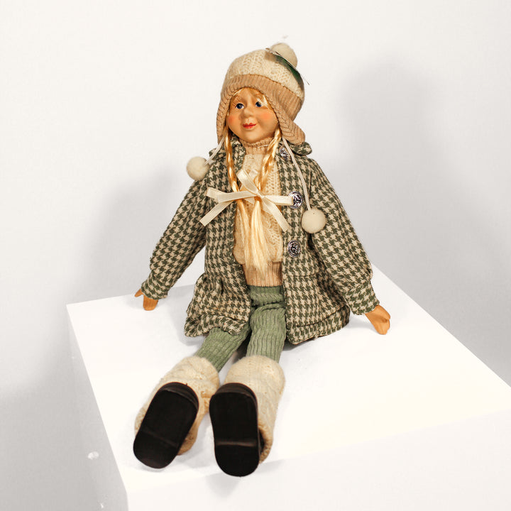 Ce personnage décoratif articulé garçon/fille de 19'' en beige et menthe ajoute une touche douce et fantaisiste à votre décor. Parfait pour les sapins ou étagères, ses membres mobiles permettent de le positionner selon vos envies.