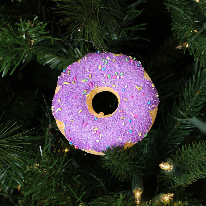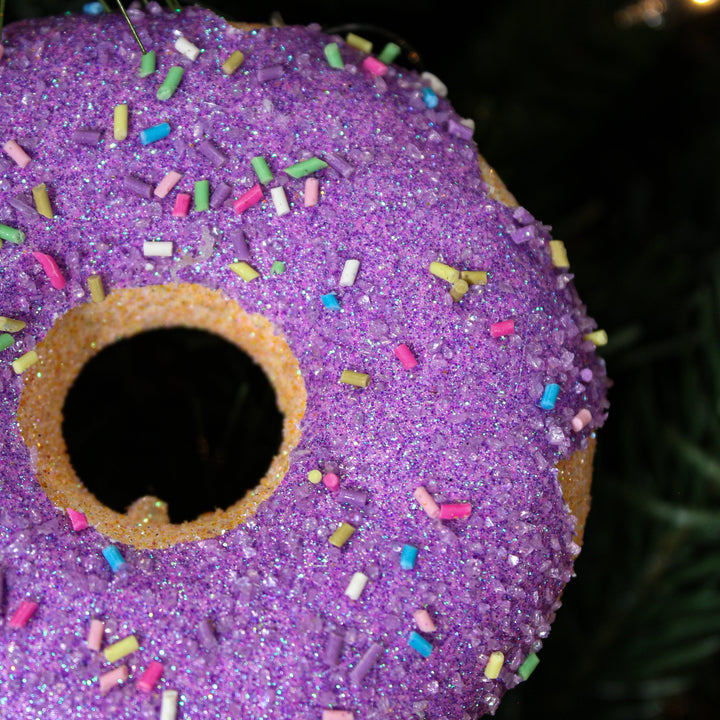 Ce beignet de 4'' ajoute une touche de fantaisie et d’originalité à votre sapin. Sa couleur vive, son aspect brillant et son format compact en font un ornement parfait pour les décorations à thème bonbon ou conte de fées.