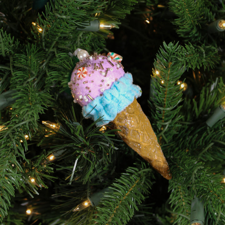 Ludique et vibrant, ce cornet crème glacée violet de 5,5'' apporte une touche de fantaisie à votre sapin. Il s’associe parfaitement avec les teintes pastel et les décorations sucrées.