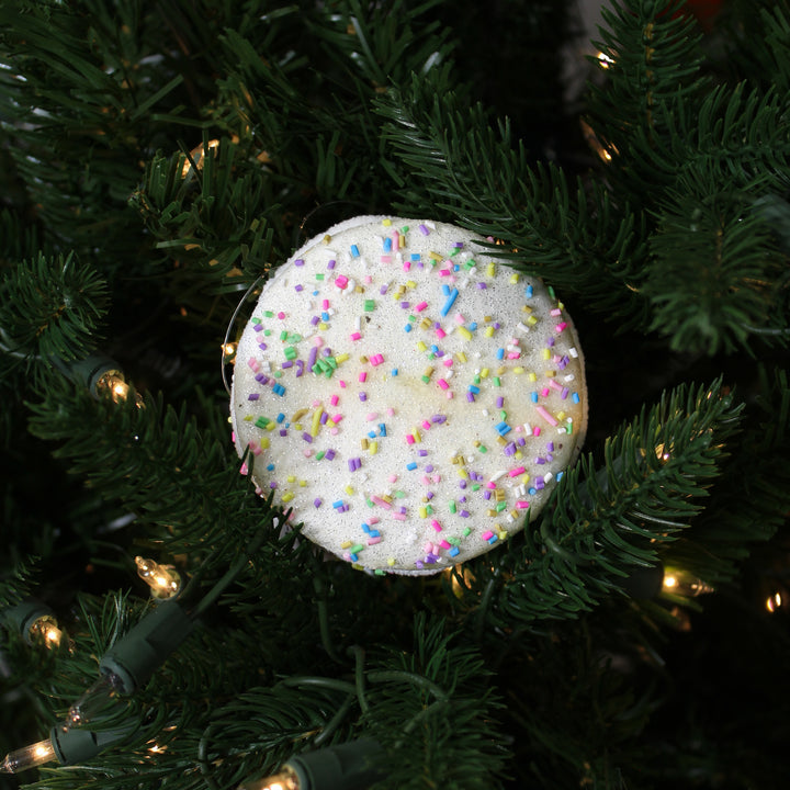Ce macaron blanc de 3,5'' est un ornement délicat au style pâtisserie. Son fini mat légèrement brillant en fait un choix parfait pour une décoration gourmande chic ou un thème pastel hivernal.