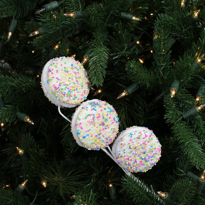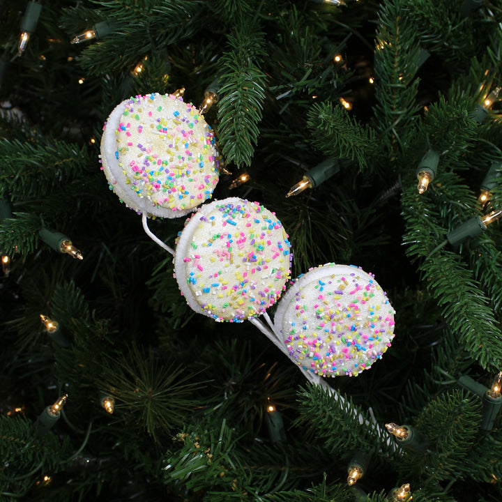 Avec ses macarons blancs aux finitions nacrées et son format élancé de 25'', cette tige est parfaite pour compléter un décor élégant et lumineux. Idéale pour les sapins gourmands, vitrines pâtissières ou décors féeriques.