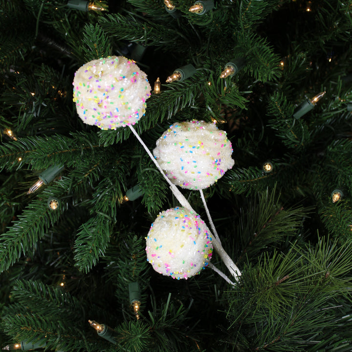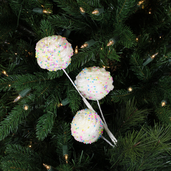 Ajoutez des reflets nacrés à votre sapin avec cette tige de boules bonbon blanches de 22,5''. Idéale pour une ambiance sucrée chic.