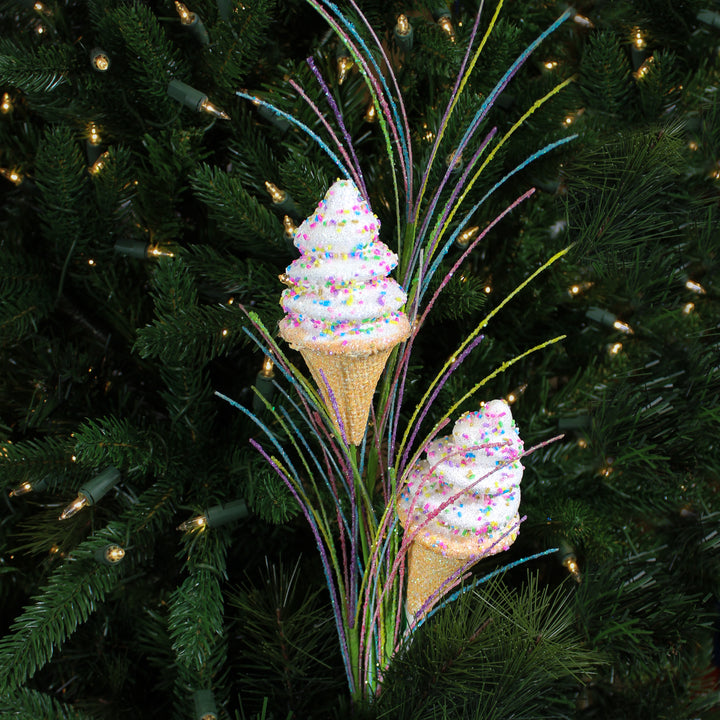 Épurée et gourmande, cette tige de cornets crème glacée blancs de 30,5'' est parfaite pour un décor d’hiver doux, sucré et lumineux.