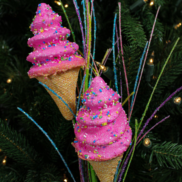 Apportez une note rose et sucrée avec cette tige de cornets crème glacée de 30,5''. Idéale pour un thème pastel ou bonbon.