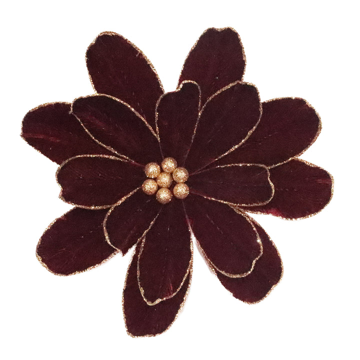 Tendance et élégante, cette tige florale bordeaux et or rose de 11'' est parfaite pour ajouter un accent métallique à vos créations de Noël modernes.