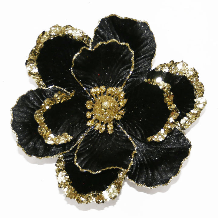 Cette tige de magnolia noir et or à clip de 8,5'' combine contraste et sophistication. Le fini mat du noir rehaussé de reflets dorés offre un effet dramatique, parfait pour les sapins ou couronnes chics.