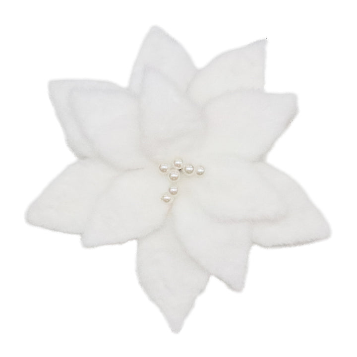 Chaleureuse et intemporelle, cette tige de poinsettia blanche en fourrure de 11'' est parfaite pour les ambiances feutrées et naturelles.