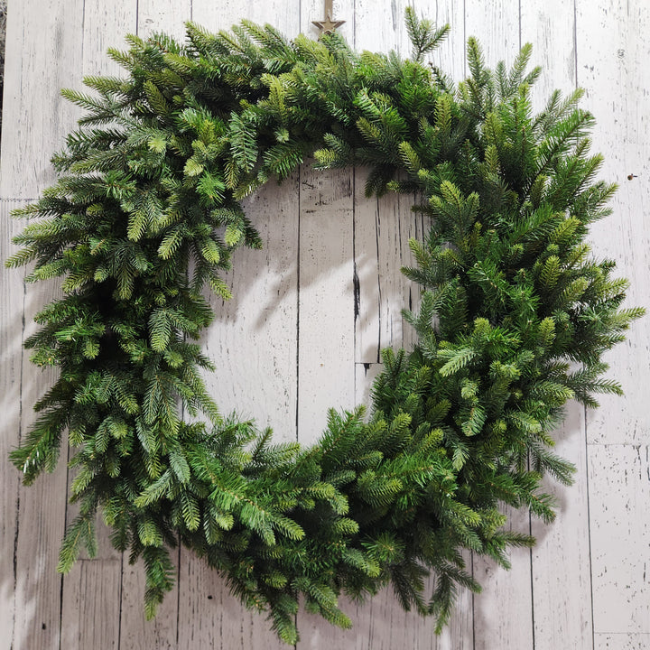 La couronne Trinité luxe verte de 48 pouces est une pièce de décoration somptueuse, parfaite pour les fêtes. Composée de 290 branches aux nuances de vert réalistes, elle évoque la fraîcheur et la densité d’un sapin naturel. Son design sobre sans ornements ajoute une touche d’élégance et de polyvalence, permettant de l’utiliser telle quelle pour un effet naturel ou de la personnaliser selon vos goûts. Cette couronne de grande taille apporte une ambiance chaleureuse et raffinée, idéale pour célébrer la magie de Noël.