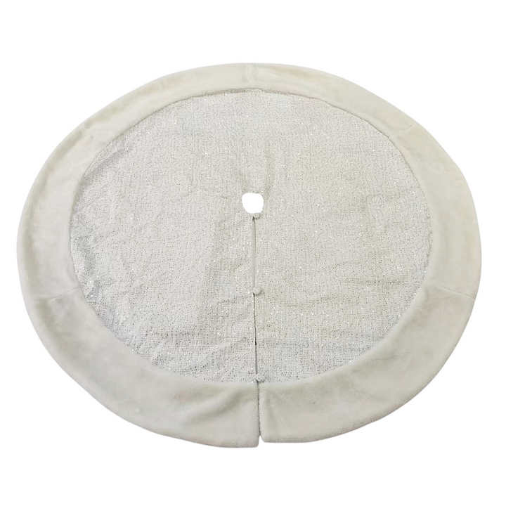 Cette jupe de sapin en fourrure à sequins blanc 64" apporte luxe et douceur à la base de votre arbre. La fourrure épaisse et les sequins scintillants créent un effet élégant et lumineux. Elle dissimule le pied du sapin tout en ajoutant une touche décorative. Parfaite pour compléter un décor chic et raffiné.