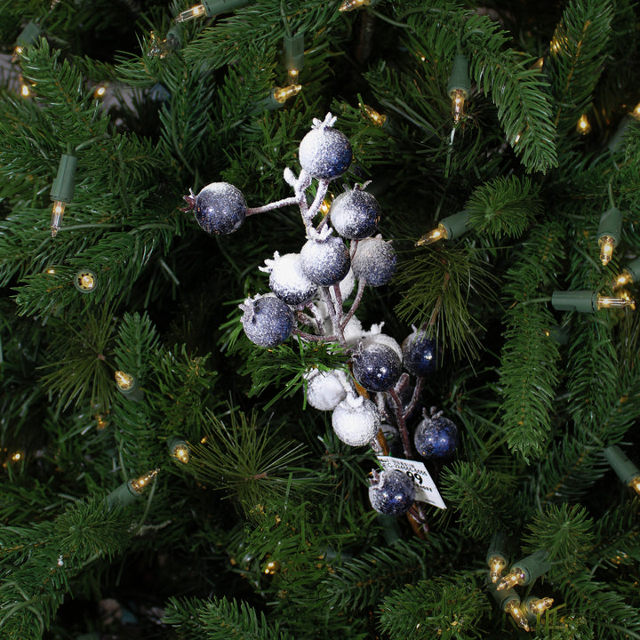 Ce pic de pommettes enneigées bleu 15.5" offre une alternative originale aux couleurs traditionnelles de Noël. Ses baies givrées bleues apportent fraîcheur et modernité à vos compositions. Idéal pour un décor hivernal élégant ou un thème polaire. Il ajoute contraste et originalité à vos arrangements.
