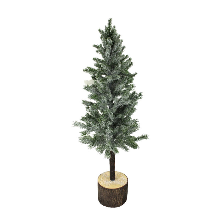 Sapin de Noël en épinette enneigé avec base vert blanc 35.5"