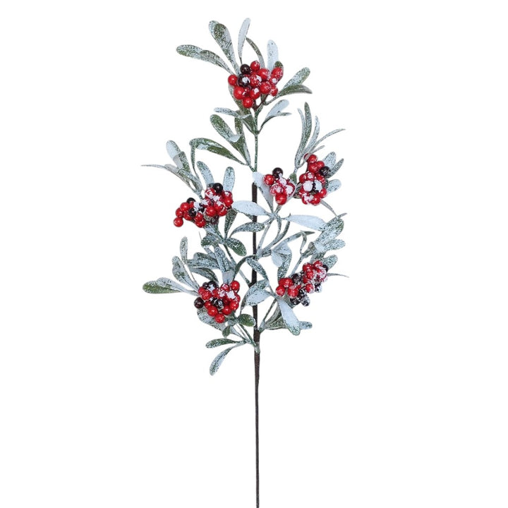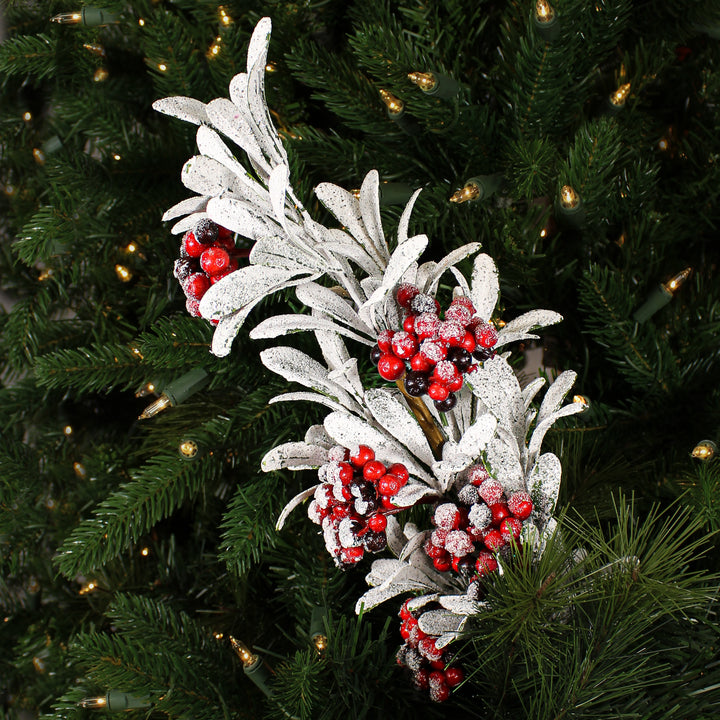 Tige de baies de laurier enneigées rouge blanc vert 24"