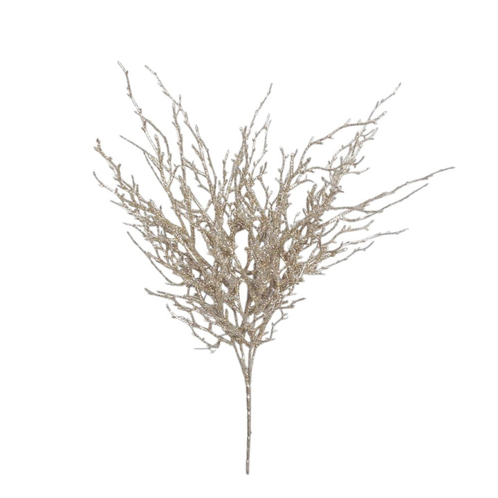 Cette tige de brindilles pailletées champagne 17" apporte éclat et légèreté. Ses paillettes fines captent la lumière et créent un effet scintillant. Elle complète parfaitement des arrangements modernes. Un accent chic pour vos décorations festives.