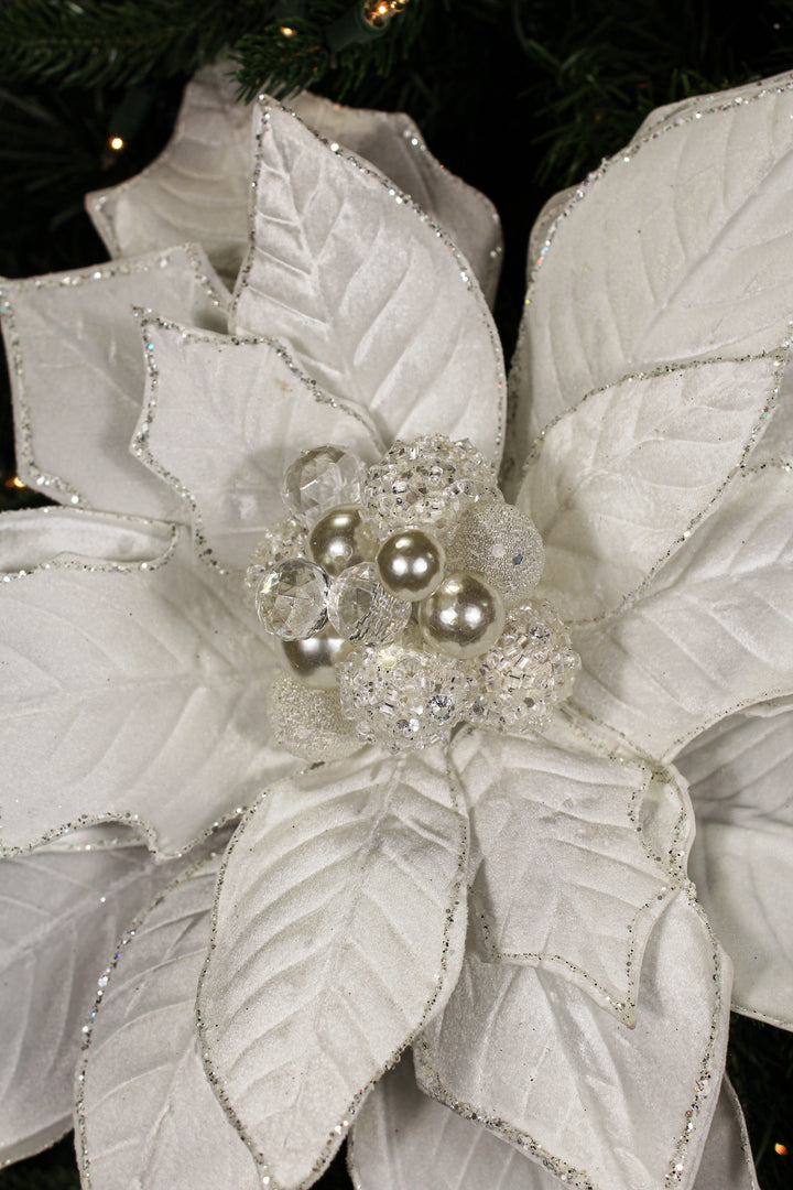 Cette tige de poinsettia en velours de luxe blanc 20" séduit par son apparence somptueuse et sa blancheur éclatante. Le velours épais et richement travaillé crée une présence visuelle imposante. Elle est idéale pour apporter une touche prestigieuse à vos arrangements. Sa teinte pure s’harmonise avec toutes les palettes festives.