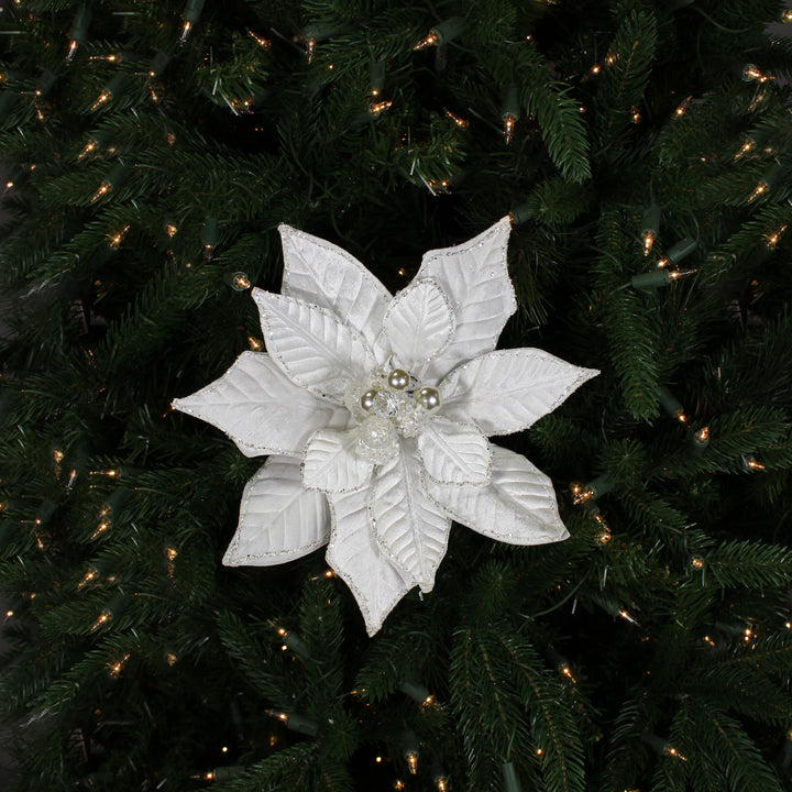 Tige de poinsettia en velours pailleté blanc 18"