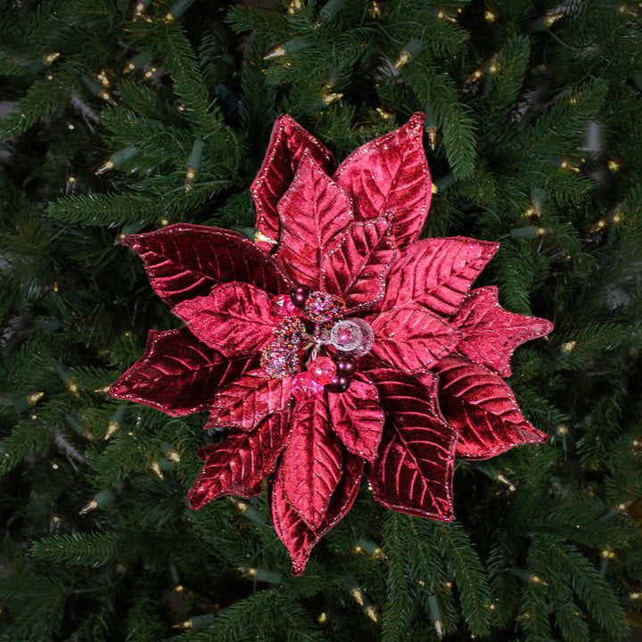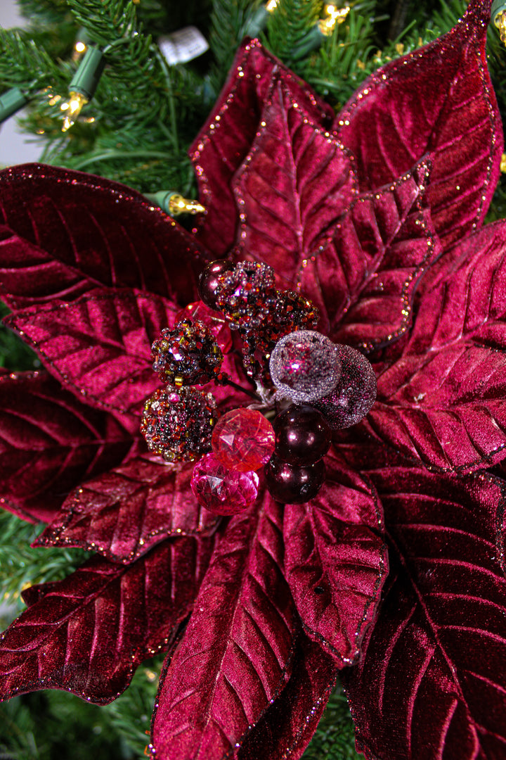 Tige de poinsettia en velours pailleté de luxe merlot 19"