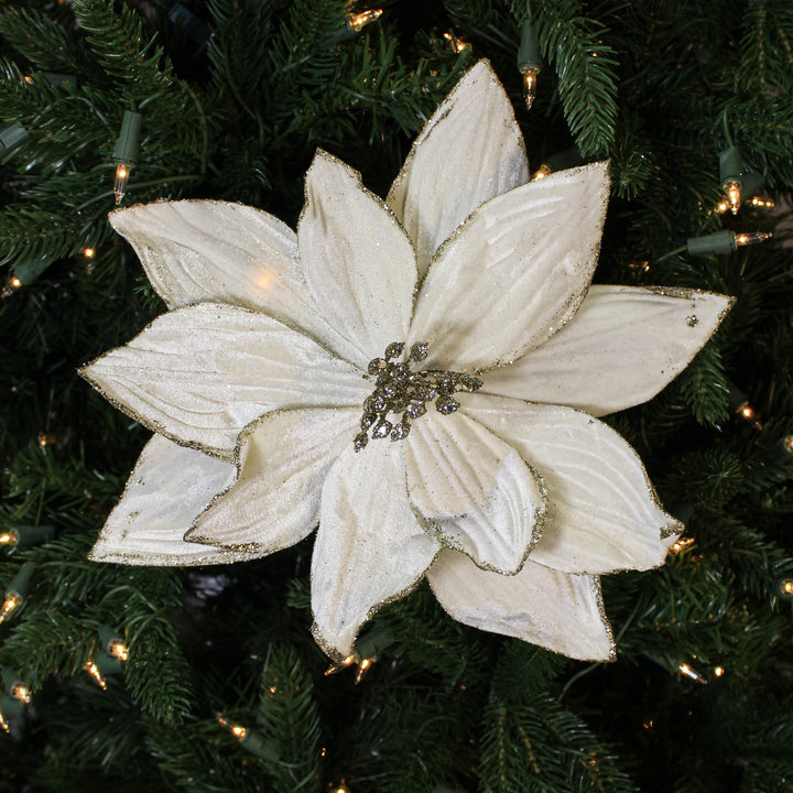 Cette tige de poinsettia en velours pailleté ivoire 22" séduit par son élégance intemporelle. Sa teinte douce et ses reflets scintillants apportent luminosité et raffinement. Parfaite pour un thème chic et épuré. Elle s’harmonise avec toutes les palettes de Noël.