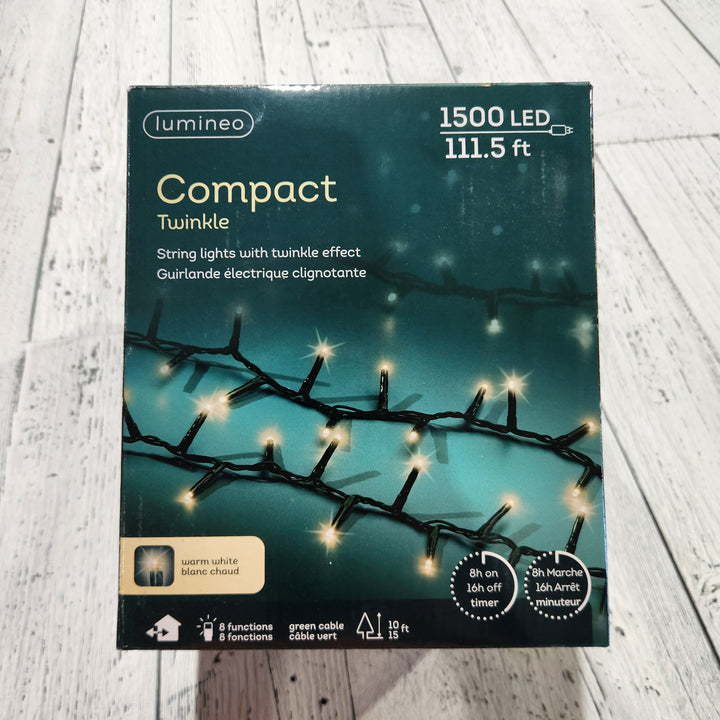 1500 lumières DEL blanc chaud, fil vert, intérieur et extérieur, 8 fonctions, 111.5'