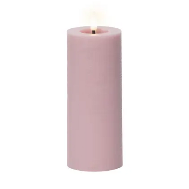 Les bougies piliers DEL flamme vacillante rose, disponibles en 4.5, 6 et 7.5 pouces, diffusent une lumière douce au travers de leur teinte pastel. Elles apportent une touche féminine et délicate à vos décors de fête. Leur effet de flamme vacillante crée une atmosphère chaleureuse et romantique. Idéales pour une déco de Noël tendre et moderne.
