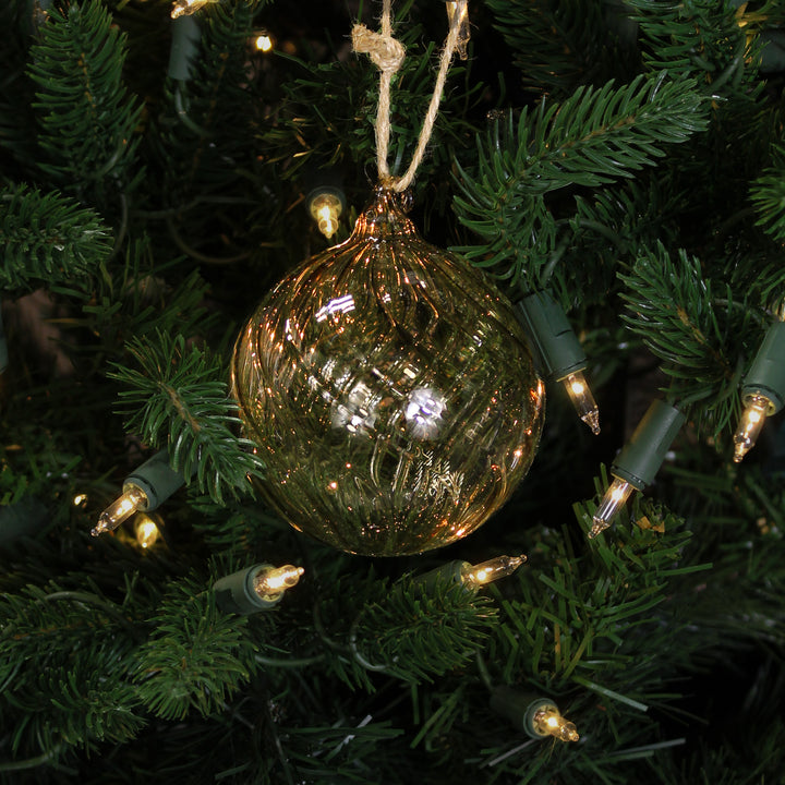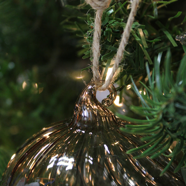 Boule de Noël en verre beige torsadé