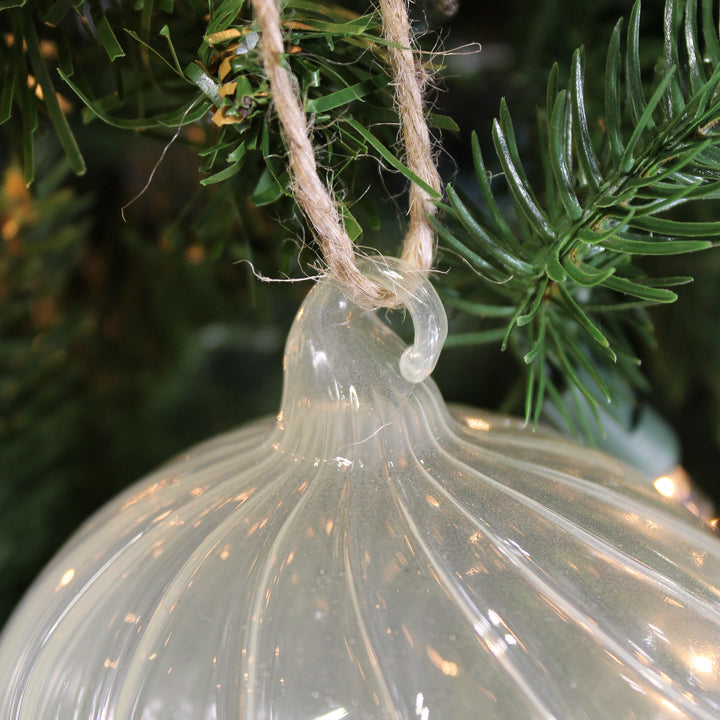 Cette boule de Noël en verre blanche torsadé de 4 pouces est une pièce incontournable pour une décoration lumineuse et chic. Sa finition blanche pure symbolise la neige et la paix, tandis que le motif torsadé reflète les lumières du sapin avec finesse. Elle s’intègre facilement dans une palette argentée, dorée ou pastel. Parfaite pour un Noël élégant et intemporel.