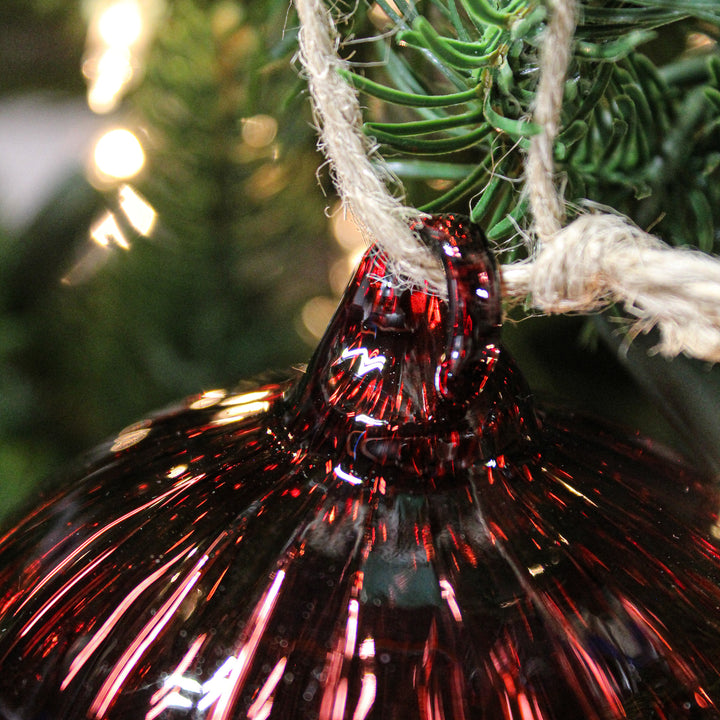 Cette boule de Noël en verre bourgogne torsadé combine profondeur de couleur et éclat festif pour un sapin élégant. Sa teinte intense apporte de la chaleur tandis que la forme spiralée reflète joliment la lumière. Le verre travaillé renforce l’effet raffiné de cette décoration. Elle est parfaite pour une ambiance de Noël classique et chaleureuse.