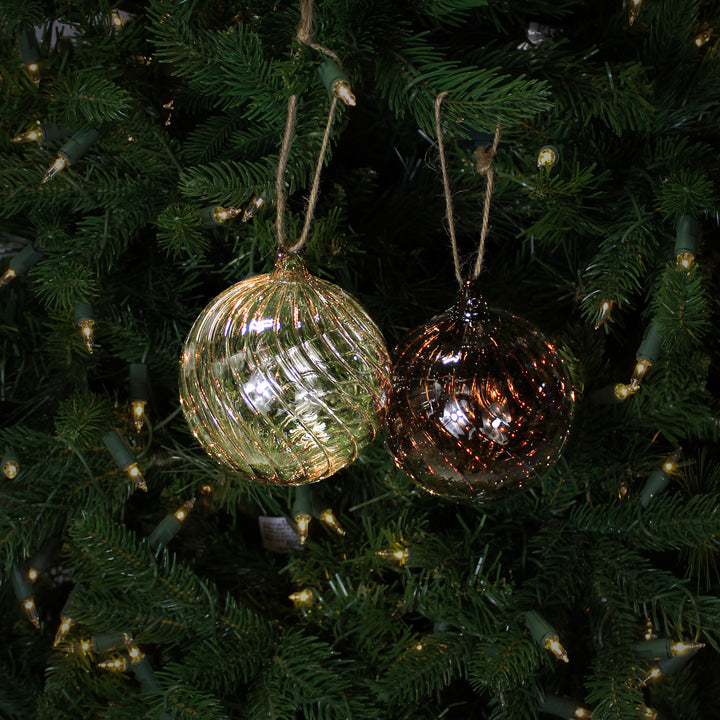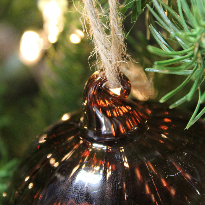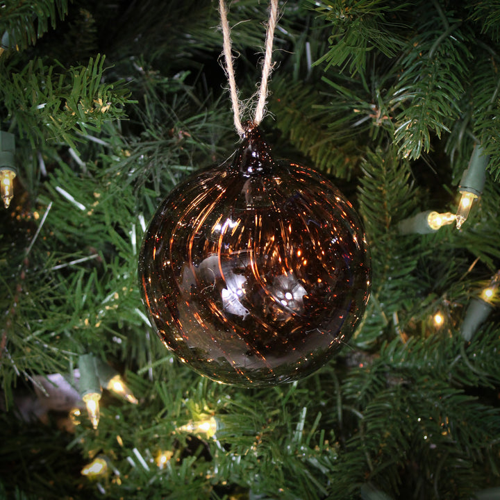 Cette boule de Noël en verre brun torsadé, disponible en formats 3 et 4 pouces, se distingue par sa teinte chaleureuse et boisée qui évoque la nature hivernale. Son design spiralé en verre soufflé crée des reflets subtils qui captent la lumière du sapin. Parfaite pour une ambiance rustique ou traditionnelle, elle apporte du relief et de l’élégance à votre décoration. Elle s’associe harmonieusement aux tons dorés, cuivrés ou crème pour un effet cosy et raffiné.
