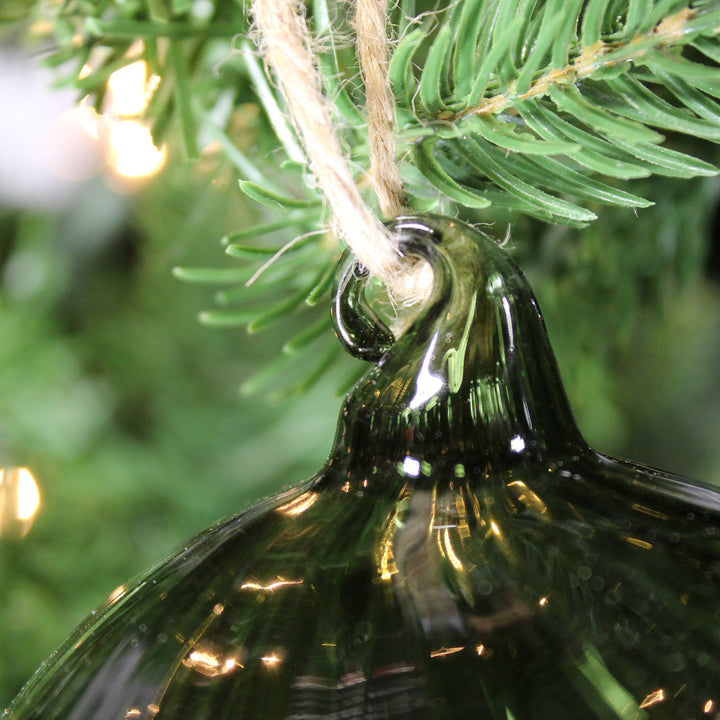 Avec son format de 4 pouces, la boule de Noël en verre vert forêt torsadé apporte une touche végétale et authentique à votre sapin. Sa teinte profonde rappelle les conifères enneigés et les paysages boisés. Le verre travaillé en spirale capte la lumière et crée un effet visuel vivant. Parfaite pour une ambiance naturelle, chaleureuse et élégante.