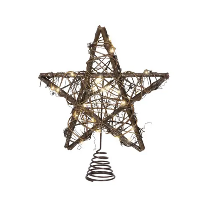 La cime étoile en rotin naturel avec DEL couronne votre sapin avec élégance et authenticité. Sa structure en rotin clair apporte une touche rustique et chaleureuse à la décoration. Les petites lumières intégrées diffusent un éclat doux et festif. Parfaite pour un Noël naturel, scandinave ou bohème.