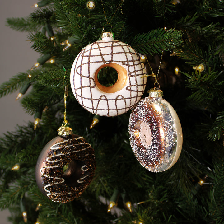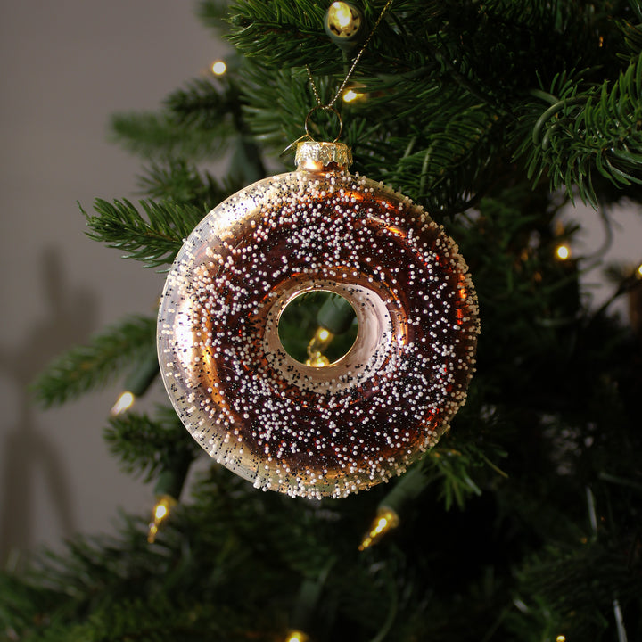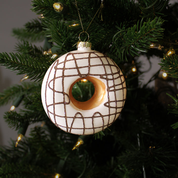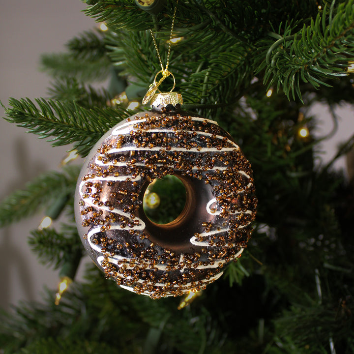 L’ornement beigne en verre chocolaté, proposé en chocolat au lait, chocolat noir ou vanille, est un clin d’œil sucré à l’univers des desserts. Son design réaliste et sa finition brillante en font un véritable petit bijou décoratif. Il se marie à merveille avec d’autres ornements pâtissiers pour un thème original. Idéal pour une ambiance chaleureuse et conviviale.