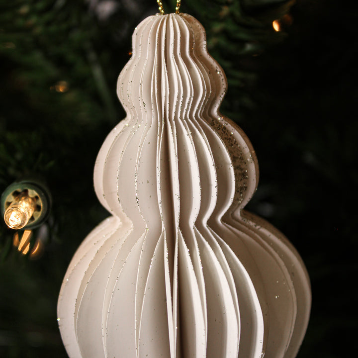L'ornement fait en papier blanc 2" est une petite touche décorative discrète mais raffinée. Sa teinte claire et sa structure simple lui permettent de s’intégrer facilement à n’importe quelle composition. Idéal pour combler les petits espaces du sapin. Il ajoute de la légèreté au décor.