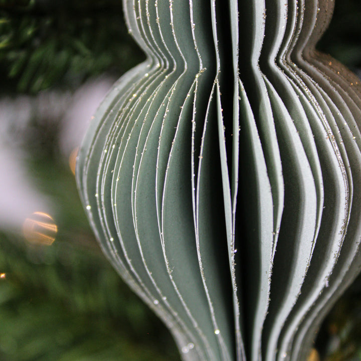 L'ornement en papier menthe 2" combine fraîcheur et finesse dans une petite forme stylisée. Sa teinte pastel est idéale pour adoucir la décoration sans l’alourdir. Il apporte un détail charmant et aérien au cœur des branches. Une belle finition pour une ambiance moderne et douce.