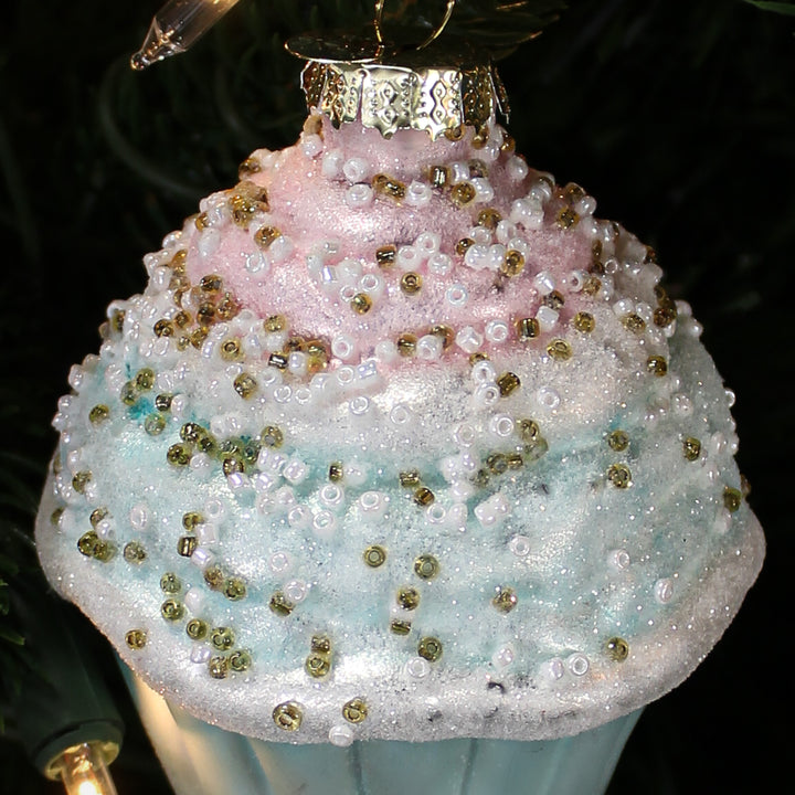 L’ornement muffin en verre pastel, décliné en bleu et rose, séduit par son allure tendre et appétissante. Sa forme délicatement travaillée évoque les douceurs maison, avec une finition brillante qui capte la lumière. Les couleurs douces s’intègrent parfaitement dans une déco sucrée ou enfantine. C’est un choix charmant pour un sapin joyeux et coloré.