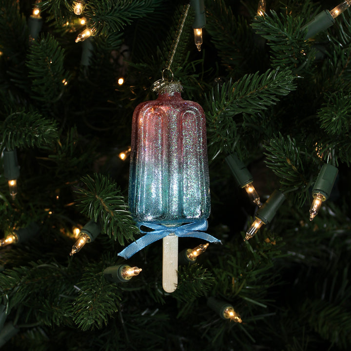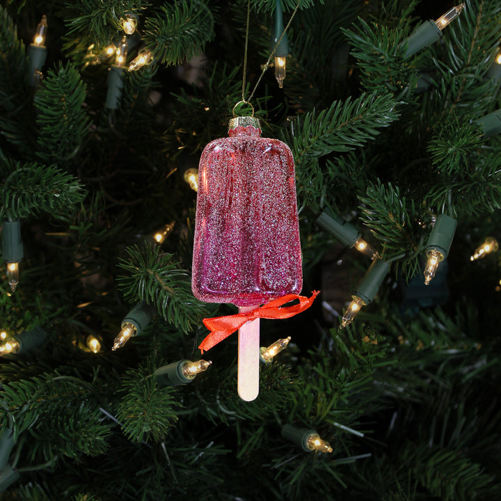 L’ornement popsicle en verre givré, disponible en rose, bleu, pêche et lilas, allie fraîcheur et fantaisie dans un format ludique. Son aspect glacé, presque réaliste, évoque les plaisirs d’été même en plein hiver. Les couleurs pastel et la finition givrée illuminent le sapin avec douceur. Parfait pour une ambiance sucrée, décalée et pleine de tendresse.