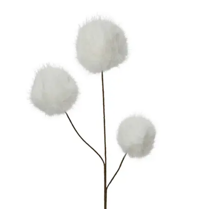 Tige décorative à 3 boules de fourrure blanche