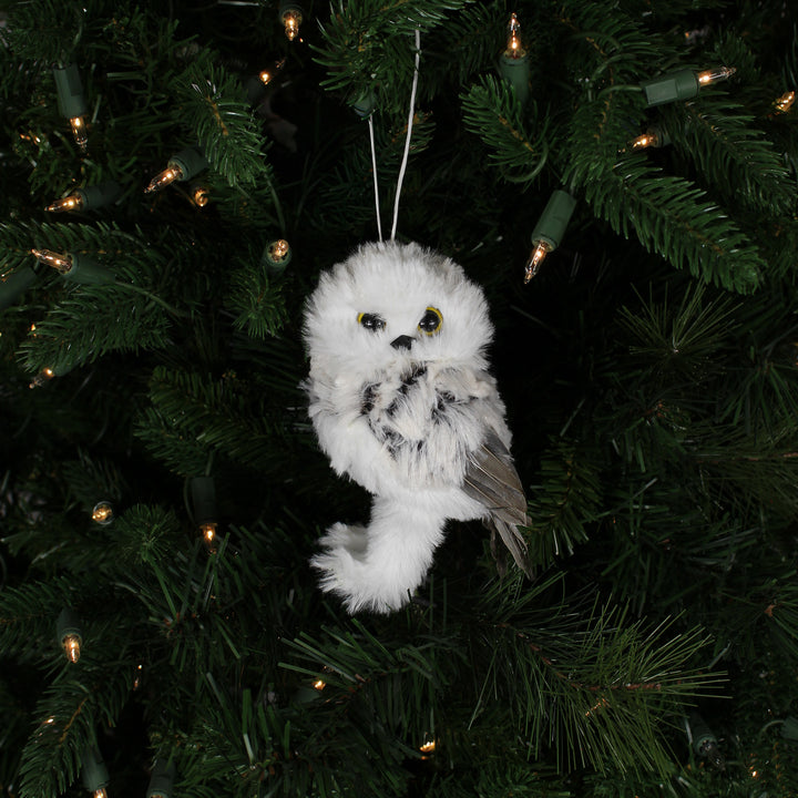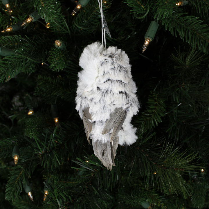 Ornement hibou en plume et mousse gris assortis 3,5" x 2,75" x 5,1"
