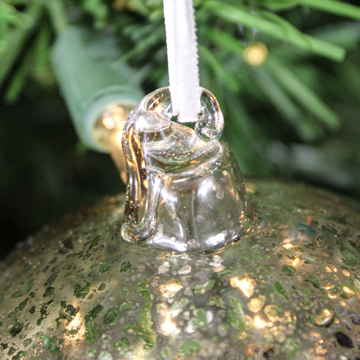 La boule en verre mercure argent vintage de 4 pouces évoque un charme rétro irrésistible. Sa finition vieillie apporte de la profondeur et une patine élégante à vos décorations. Les nuances argentées captent la lumière pour un effet scintillant discret. Elle s’intègre aussi bien à un décor traditionnel qu’à un style chic et contemporain. Un élément raffiné pour sublimer votre sapin.