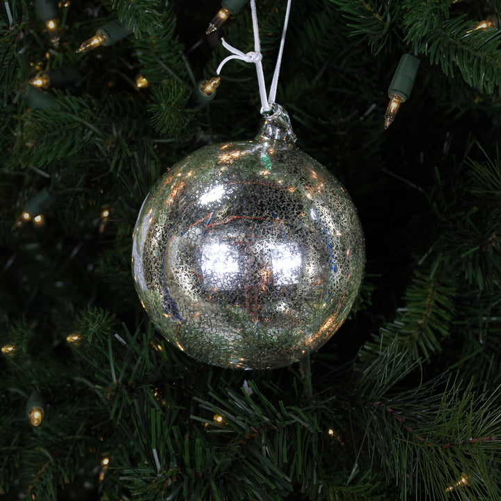 Boule en verre mercure argent vintage 4,5"