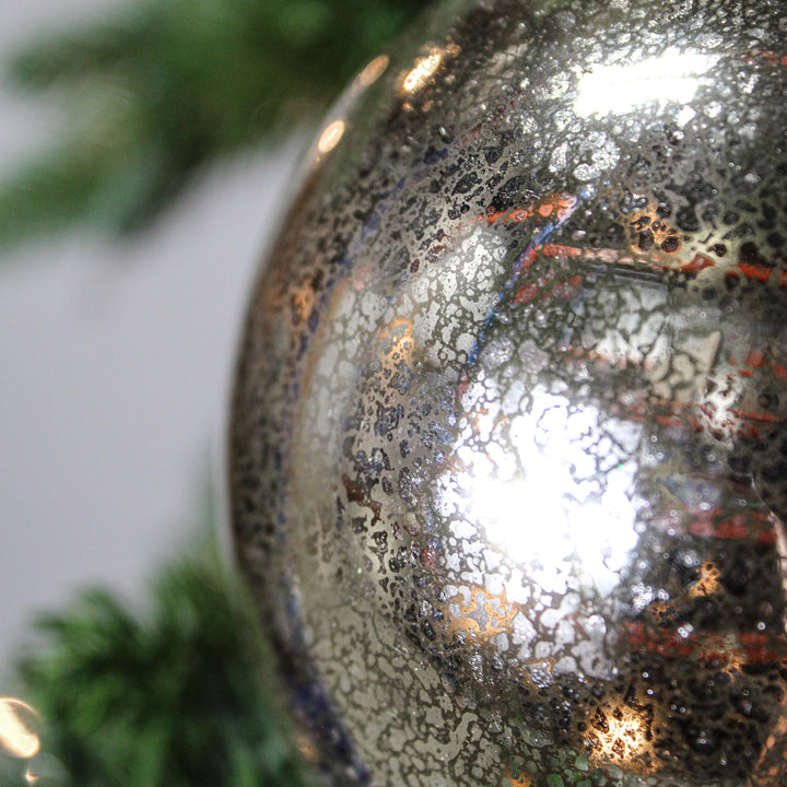 Cette boule en verre mercure argent vintage de 4,5 pouces combine authenticité et éclat. Sa teinte argent vieilli crée une atmosphère chaleureuse et sophistiquée. Sa taille intermédiaire permet de l’associer facilement à d’autres ornements pour un bel équilibre visuel. Idéale pour un sapin élégant, elle se marie à merveille avec des tons or, blanc ou rouge profond. Un choix sûr pour un effet raffiné.