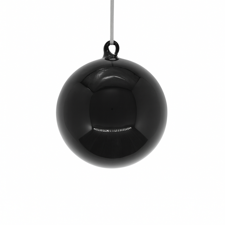 La boule en verre noir brillant se démarque par sa prestance et son raffinement. Son format généreux attire l’œil et équilibre la composition du sapin. Sa surface hautement réfléchissante capte et diffuse la lumière pour un effet saisissant. Elle s’associe aussi bien aux décorations luxueuses qu’aux concepts minimalistes. Une pièce maîtresse pour une décoration haut de gamme.