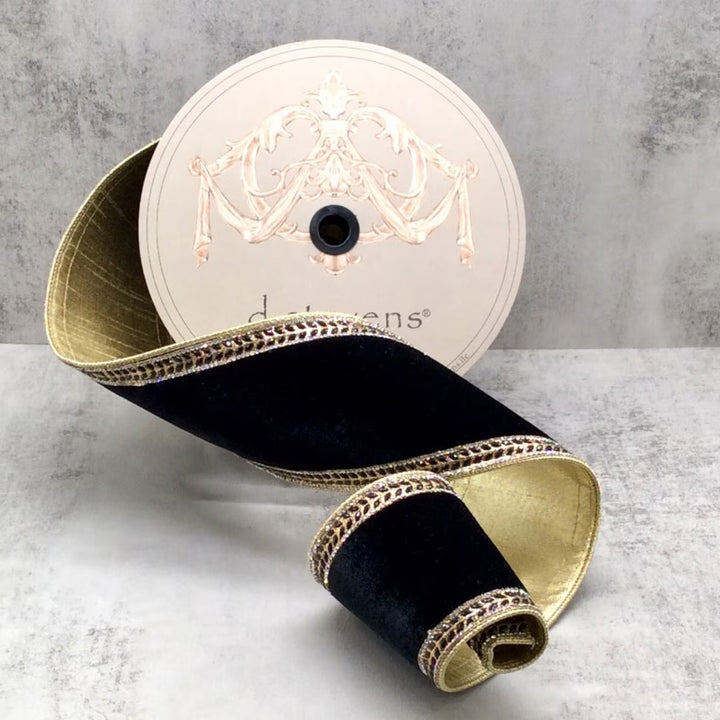 Ruban latéral velours bijou cristal noir noir or 10 cm x 4,5 m