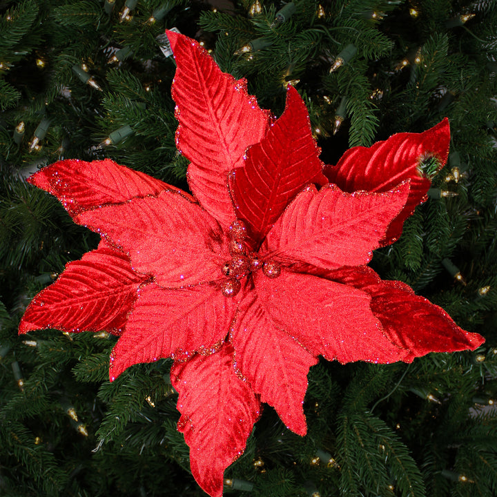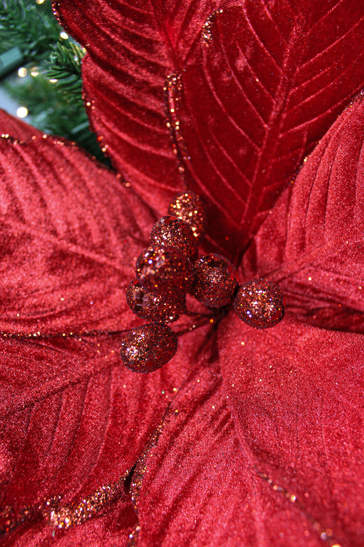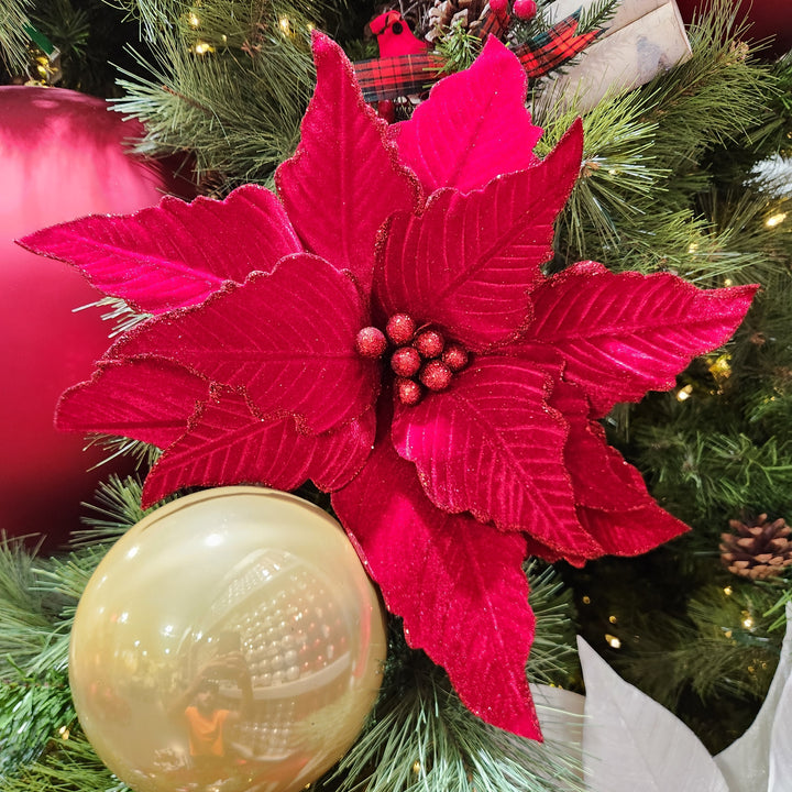 Tige de poinsettia en velours rouge 22" pour une décoration classique et festive