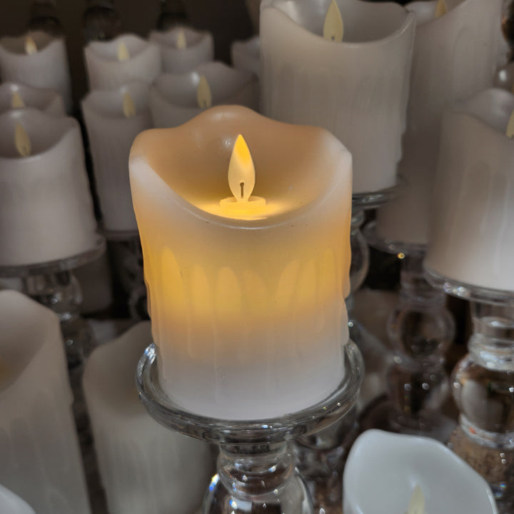 Compacte et réaliste, cette chandelle DEL effet gouttes 3 x 4 po est parfaite pour une décoration de Noël raffinée. Son effet cire fondue ajoute une touche d’authenticité et son éclairage vacillant crée une ambiance douce et apaisante. Elle convient aux petits espaces, aux plateaux décoratifs ou aux centres de table hivernaux. Une solution élégante et sécuritaire pour illuminer vos soirées festives.