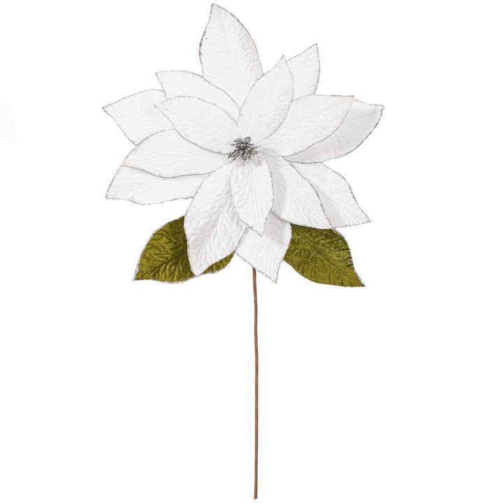 Élégante et pure, cette tige de poinsettia blanc de 27,5" avec fleur de 24" illumine vos décorations d’une touche lumineuse et raffinée. Ses pétales immaculés évoquent la neige fraîche et la magie de l’hiver. Idéale pour un grand sapin, une couronne ou une vitrine, elle complète un style chic et intemporel. Elle s’associe avec des tons argentés, dorés ou naturels.
